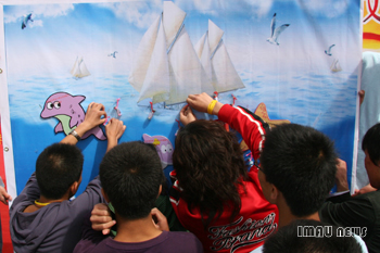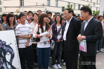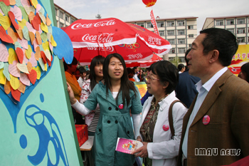 开幕式结束后,与会领导来到了西区公寓广场与同学们一起参加了大型心理文化活动。领导们在“心海扬帆”许愿活动中许下了对大学生们健康成长的美好心愿,并将许下的心愿与同学们许下的心愿一起粘贴在了许愿板上。在仔细参观了各学院的展台后,领导们观看了各学院朝气蓬勃的方阵表演。开幕式上领导们与在场的老师同学进行了亲切愉快的交谈。