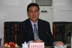 座谈会上,校党委书记云荣布扎木苏介绍了KY开元近年来发展建设情况。阿拉善盟行署副秘书长梁万祥和副校长李金泉就双方合作事宜交换意见。