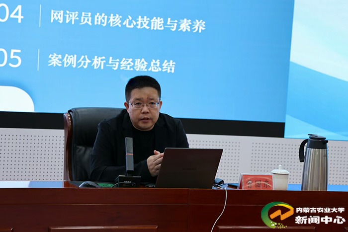 讲座中,曹国东以《内蒙古教育舆情动态与网评引导实务》为题,系统梳理了2013年以来习近平总书记对网络强国建设所作出的一系列重要指示批示精神,并从舆论空间的极端化、传播主体的圈层化、传播过程的智能化、传播文本的多模态化、传播行动的自组织化、传播范围的外网化等六个方面分析了网络舆论场的走势。他还结合2024年度自治区教育系统舆情态势和区内外经典舆情处置案例,深入分析了当前网络舆论环境的特点与挑战,并着重强调了网评员的核心技能与素养。