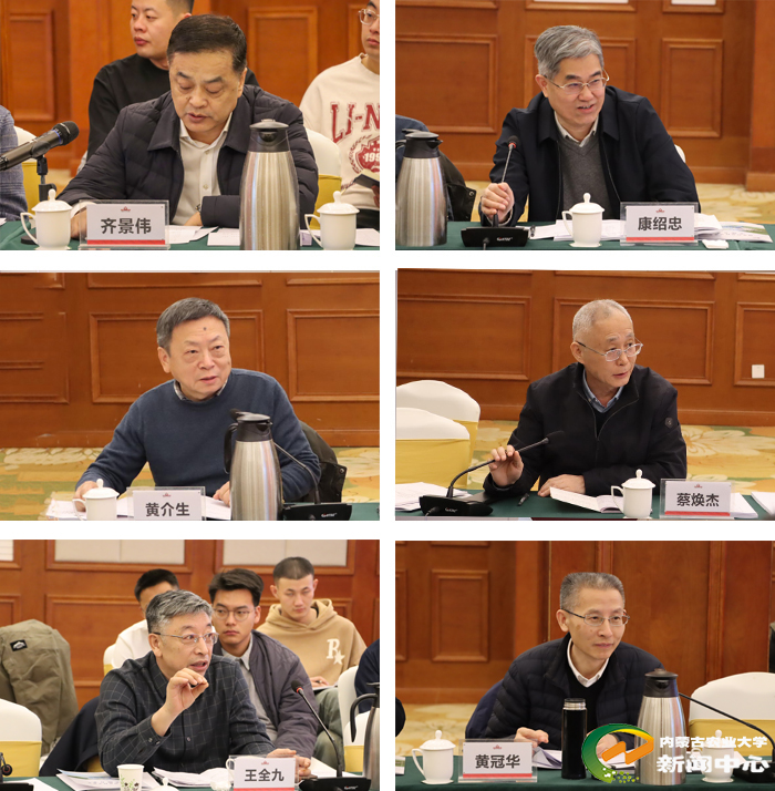 项目实施方案论证会由项目论证专家组组长、中国工程院康绍忠院士主持召开。康绍忠和武汉大学黄介生教授、西北农林科技大学蔡焕杰教授、西安理工大学王全九教授、中国农业大学黄冠华教授等专家组成员分别对项目方案提出意见和建议。两个项目的负责人、水利与土木建筑工程学院的史海滨教授和李仙岳教授,以及各课题负责人汇报了项目的研究内容、关键科学问题、创新点和实施路径。
