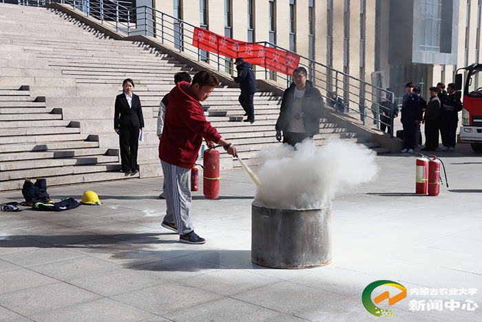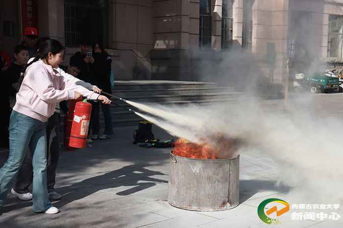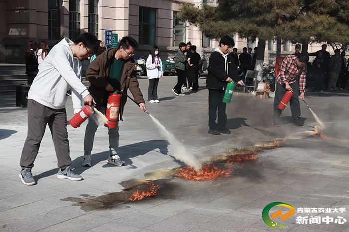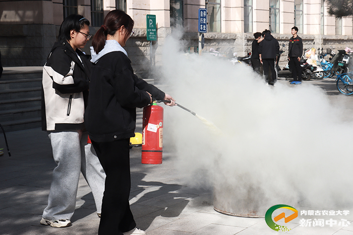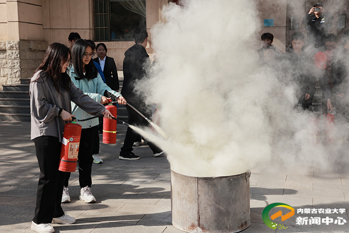 活动中,自治区应急管理厅专家库成员、林学院消防工程系的教师们结合火灾典型案例,系统讲解了校园火灾的危害性、消防安全应急知识和火灾逃生技巧等,引导师生把所学知识转化为守护消防安全的实际行动。随着警报声拉响,三个校区开展火情模拟。教学楼内释放无毒烟雾弹,还原火灾环境,参演学生在工作人员的指挥下,以湿毛巾紧捂口鼻,弯腰低头沿墙迅速撤离。整个撤离过程井然有序,同学们在规定时间到达指定集合点。在灭火实操环节,保卫工作部工作人员现场展示消防作战服穿戴过程,并详细演示干粉灭火器"提拔握压"四步操作法,指导学生完成真实灭火体验。活动现场还开展了消防知识有奖趣味问答和签名墙互动环节,通过寓教于乐的方式进一步强化活动效果。