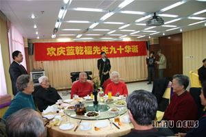12月28日,蓝乾福老先生九十华诞庆祝活动在金岁大酒店举行。副校长李金泉、动科院、离退休处等有关单位领导同志,蓝老的亲属、老同事以及学生代表应邀参加了此次活动。