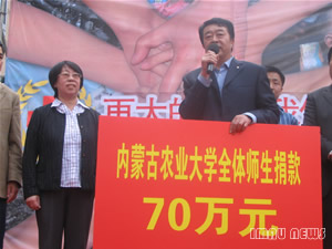 五、全校师生踊跃为震区人民奉献爱心。四川汶川特大地震发生后,全校师生发扬伟大的抗震救灾精神,积极向震区人民捐款83万元,全校共产党员缴纳特殊党费39.6万元。