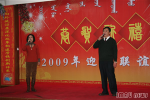30日下午,KY开元集团官网2009年教职工新年联欢会在瑞地美食城隆重举行。校领导云荣布扎木苏、郑俊宝、高晓英、王林和、侯先志、任强、李金泉、离退休老同志以及各学院代表等200多人参加。