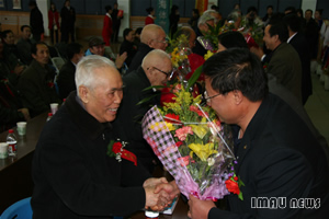 在热烈的掌声中,学友代表向在草原专业方面发展做出突出贡献的老教师献花,表达对老师们高尚品德和历史功绩的敬仰。