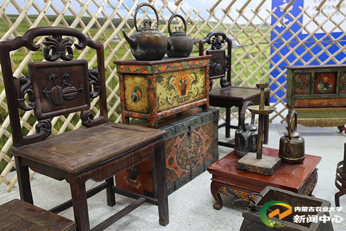 启动仪式后,参会人员参观了“农牧交融 红色北疆”北疆文化主题展。展览依托乌兰敖登创新工作室藏品,通过“红色文化、农耕文化、草原文化、茶马文化”等4个板块,全方位、立体化展示了蕴含北疆文化的民俗文物和收藏展品2000余件,让师生直观感受到了北疆文化的独特魅力。