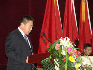 校团委书记那森巴雅尔致贺词。内蒙古师范大学学生会主席吉海波代表各兄弟院校学生会致贺词。