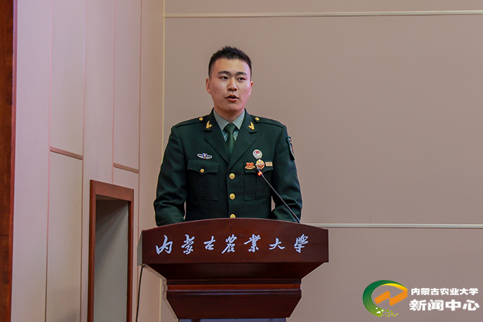 退役大学生代表阿骐图、邢建文结合自身参军经历,讲述了军旅生涯的收获与故事。他们以“老兵”身份发出倡议,鼓励同学们把握政策机遇,在部队大熔炉中淬炼青春、实现价值。