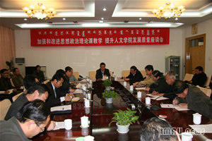 巡视员包赛音、副校长侯先志在会上就加强和改进思想政治理论课教学最紧迫的几个问题作了讲话。