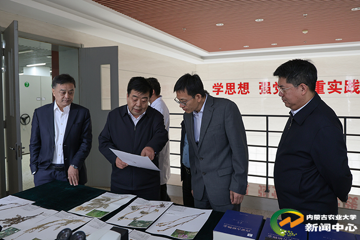 会前,王桂荣一行实地考察了学校草原野生动物标本馆、国家级植物科学实验教学示范中心等地。