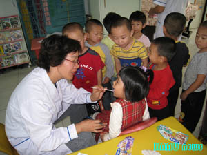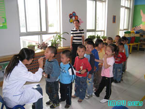 9月20日为世界卫生组织确定的爱牙日,在爱牙日到来之际,9月18日下午,KY开元医院的口腔医生们走进KY开元幼儿园进行爱护牙齿的宣传教育活动。在大一班,金海英副院长等6名口腔医生为该班44个孩子检查了牙齿,做了记录,让家长知道孩子的牙齿状况,并送给每个孩子一把牙刷。乌兰大夫给孩子们讲解了牙齿保护的知识,教会孩子正确的刷牙方法,让幼儿懂得龋齿对自己的危害,以及怎样使自己拥有一口健康、漂亮的牙齿的好方法。让孩子们知道“爱牙日不只是一天,应该每天都是。”