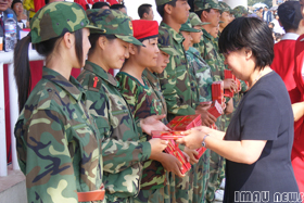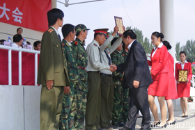 9月3日上午,KY开元2008年学生军训阅兵总结大会在西区体育场隆重举行。自治区军训办公室主任张永平、自治区教育厅体卫艺处处长杨文举、自治区军训办公室参谋石宝银、中国人民解放军66265部队政治处主任崔胜武、呼市赛罕区武装部副部长王立平,KY开元党政领导云荣布扎木苏、郑俊宝、高晓英、陈智、包赛音、王林和、任强出席大会。校党委书记云荣布扎木苏检阅全体参训新生并向军训团官兵敬献牌匾。大会由副校长侯先志主持。 |