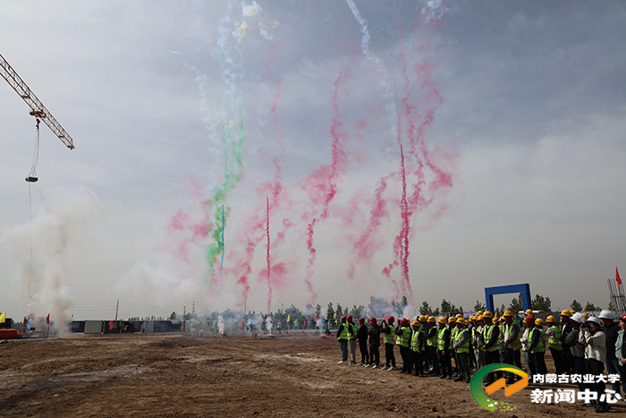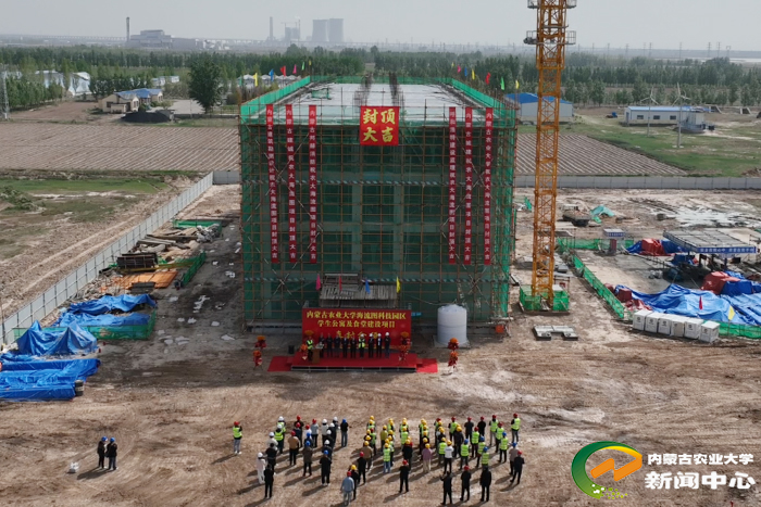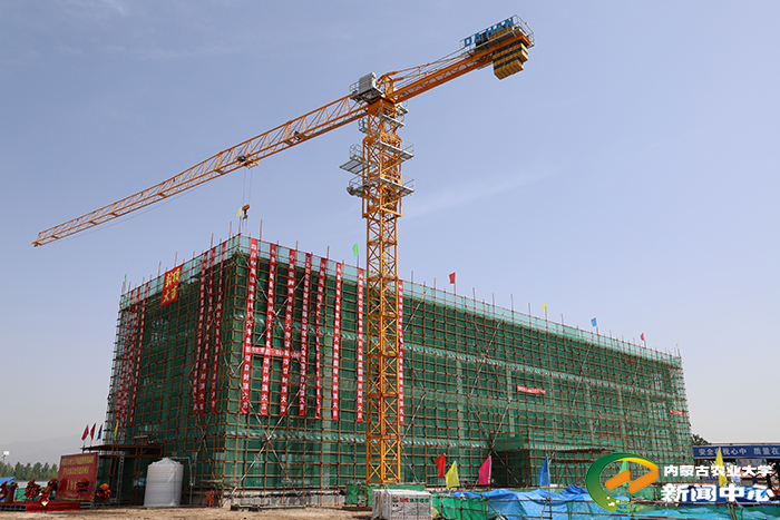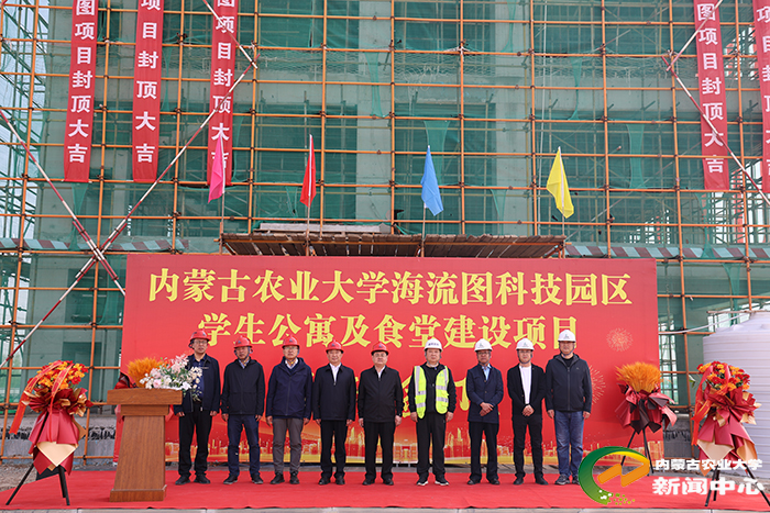 5月7日上午,学校在海流图科技园区举行学生公寓及食堂建设项目封顶仪式。校党委委员、副校长陆海平,土默特左旗人民政府党组成员、副旗长潘文启出席仪式。