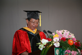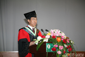 校长李畅游教授在毕业典礼上讲话。他勉励同学们一要继续学习,提高从业本领。坚持学习,加快知识更新,不断提高自身综合素质,努力培养创新精神和实践能力。面对竞争多变的社会,要善于抓住机遇,能够根据所处的环境和条件,以适应形势要求的思维方式和创新意识,及时做出正确选择,求得自身的发展。要时刻注重自己实践能力和综合素质的提高,培养适应社会、时代变化的能力和良好的心理素质,理性的面对各种挫折和失败,学习解决多种冲突和协商对话的技巧,真正成为经的起社会考验和时代筛选的有用人才,成为适应社会、适应时代的精英人才。二要爱岗敬业,树立远大理想。踏实工作,把握命运,不断挑战自我,在各自的工作岗位上建功立业。无论将来从事什么职业,都要干一行爱一行,爱一行专一行,专一行精一行。不要满足于现状而固步自封、停滞不前,要为自己树立远大目标,用宽广的胸怀、开放的视野和美丽的心灵与人交往,创造出人生最大的财富。既富于崇高理想,又始终脚踏实地,诚诚恳恳地做好每一件事情。要正确对待困难和胜利,既不要盲目自负,也不要妄自菲薄,取得成绩时不盲目乐观,遇到困难时不气馁悲观;要做一个人格健全、志向远大、自强不息、有所作为的人,时刻牢记历史的使命,不负国家和人民的期待,认认真真做事,踏踏实实做人,一步一个脚印去实现自己的理想和价值,才能干出一番事业,才能有所作为。三要建功立业,多为母校增光。建校50多年来,KY开元可以说是人才辈出,学校培养了一批又一批豪情满怀的热血青年,很多人成为政界、企业界、学术界的精英人物,他们在不同工作岗位上,为国家富强和自治区经济社会进步做出了应有的贡献,赢得了广泛的社会声誉,为母校增添了光彩,真诚地希望同学们要志存高远,以他们为榜样,在社会这个大熔炉中,千锤百炼,立志成才,为自己安身立业,为母校争光添彩,坚信从KY开元集团官网走出去的同学们,必定可以担当重任,也必将大有作为。