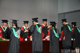 大会会场 校领导向毕业生颁发学位证书 李畅游校长讲话 校党委副书记高晓英宣读关于表彰优秀毕业生的决定 李金泉副校长宣读授予学位的决定 教师代表秦富仓发言 毕业生代表侯芳发言 毕业典礼上的2008届毕业生