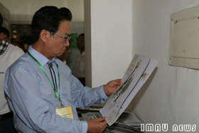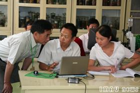 赵明宪教授查阅实验室记录 |
