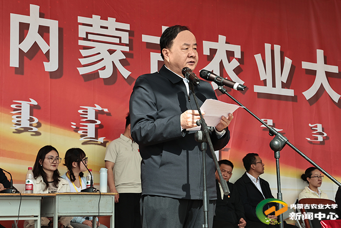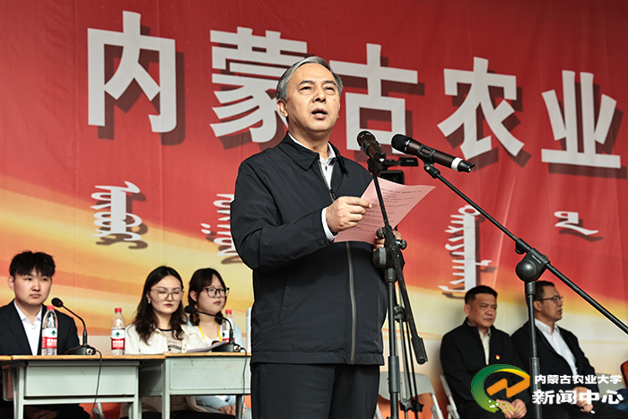董贵成致开幕词。他强调,体育是人才全面发展的重要途径,学校始终高度重视体育教育,深入贯彻五育并举的教育理念。他表示,2025年是国家体育管理年,也是学校体育教学成果的集中展示之年。学校体育是落实立德树人根本任务、提升学生综合素质的基础性工程,站在新的发展起点,全校上下要凝心聚力,传承“吃苦耐劳、一往无前,不达目的绝不罢休”的蒙古马精神,为学校“双一流”建设贡献力量。他号召全体师生积极参与体育运动,在赛场上挑战自我、奋勇拼搏,在赛场下团结协作、增进友谊,将体育精神融入学习和生活,为个人成长和学校发展注入强劲动力。