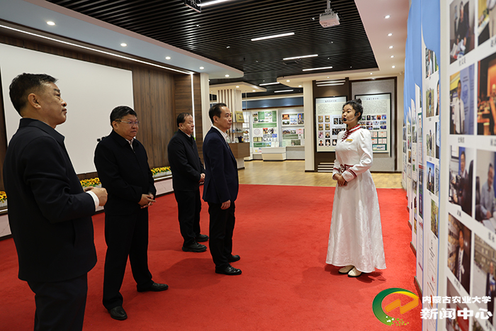 座谈会前,杜汇良一行实地查看了草原野生动物馆、国家级植物学实验教学示范中心、云畜牧创新平台、国家农业微生物资源库、教育部重点实验室、学生公寓、学生一站式服务中心、教学楼,参观了校史展览馆和北疆文化建设成果展,听取了相关负责人、师生代表的情况介绍,详细了解了学校在教育教学、基础建设、师生服务等方面的各项工作。