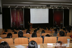 校党委副书记高晓英在大会上讲话,材料科学与艺术设计学院院长王喜明致欢迎词,“金犊奖”召集人石昕在巡讲会上介绍了三年来“金犊奖”的举办情况和本次“金犊奖”的评选原则,对KY开元积极参与并给予“金犊奖”活动大力支持表示感谢。雅虎公司代表也在大会上致贺词。