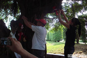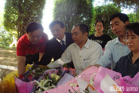 4月8日下午,李莹同学父亲李建国、母亲冯迎春和KY开元经济管理学院分党委副书记兼副院长赵国年、深圳眼科医院姚晓明博士、深圳狮子会高新分会会长魏承庆、深圳狮子会第八分域主席周国雄、接受李莹眼角膜捐赠的王俊和张锦威以及内蒙古电视台新闻综合频道、深圳电视台都市频道、深圳市晚报等媒体记者一起来到深圳市吉田墓园“光明树”下祭奠李莹同学,大家共同向“光明树”敬献了鲜花和哈达,表达了对李莹同学和其他眼角膜捐献者的纪念和缅怀之情。