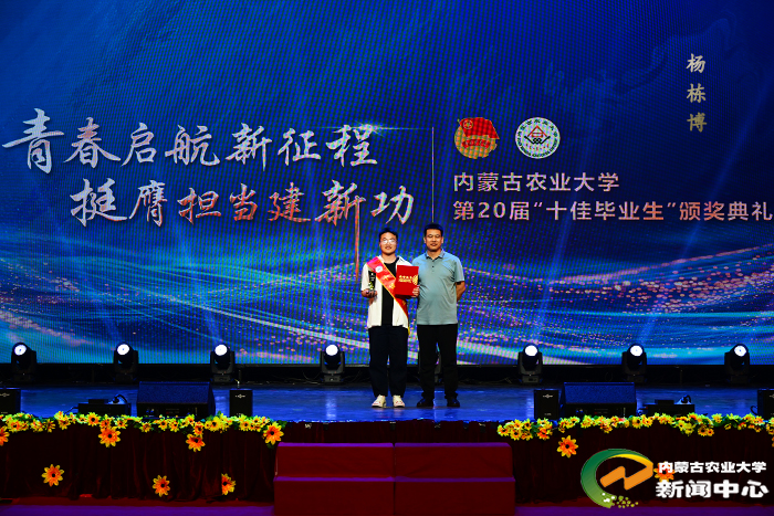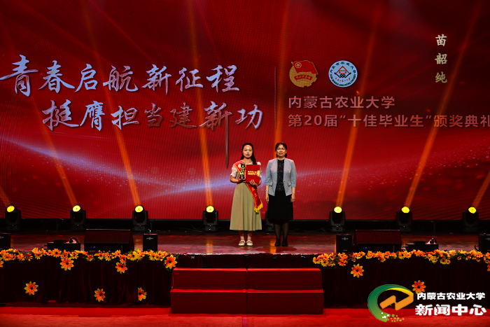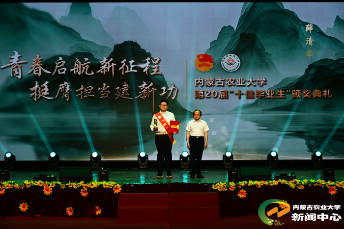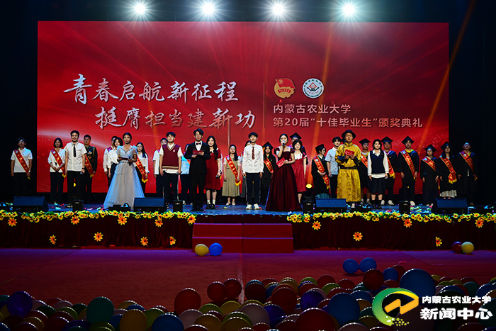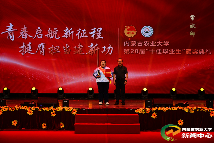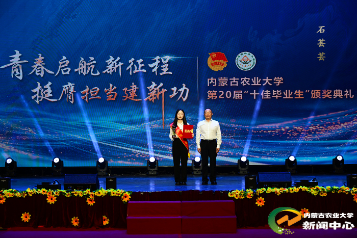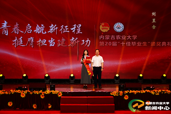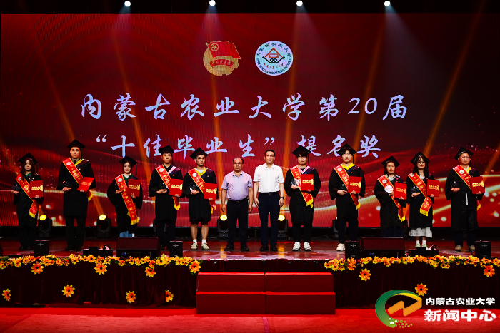 6月12日晚,学校西区体育馆内灯火璀璨,第20届“十佳毕业生”颁奖典礼在此隆重举行。校党委副书记、校长刘永斌,副校长塔娜,党委委员、副校长齐景伟,党委委员、纪委书记褚亚申,党委委员、副校长陆海平和董同力嘎,党委委员、职业技术学院党委书记韩瑞平等出席典礼,与2000余名师生共同见证10名“十佳毕业生”及10名提名奖获得者的荣耀时刻。