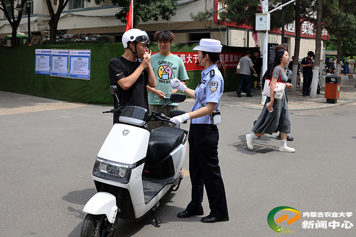 保卫工作部联合呼和浩特市公安局交通管理支队赛罕大队及驻校交警,在西校区公寓门口开展了专项交通安全宣传活动。交警聚焦即将于9月1日实施的《内蒙古自治区电动自行车管理条例》及电动摩托车注册登记政策,结合具体案例,详细解读了电动自行车违规停放、超速行驶、未佩戴安全头盔、违规载人等行为的严重安全隐患。活动现场,交警进行了电动自行车安全骑行规范演示,并重点示范了安全头盔的正确佩戴方法及其关键保护作用,引导广大师生员工深刻认识安全出行、文明骑行的重要性,从源头上预防和减少校园交通事故的发生。