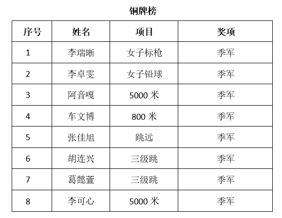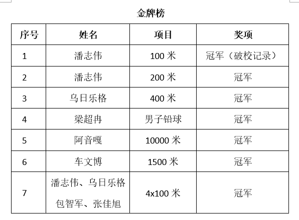 KY开元田径代表队共派出25名运动员参加校园组39个项目的比赛。经过5天的激烈角逐,在100米、200米、400米、10000米、铅球、标枪、接力等项目中取得7金7银8铜的优异成绩,并以团体总分232分的成绩获得本科校园组冠军。另外,体育教学部刘延荣、任刚、赵国林3名教师荣获“优秀教练员”称号,阿音嘎、车文博、乌日乐格、李瑞晰4名同学荣获“优秀运动员”称号。