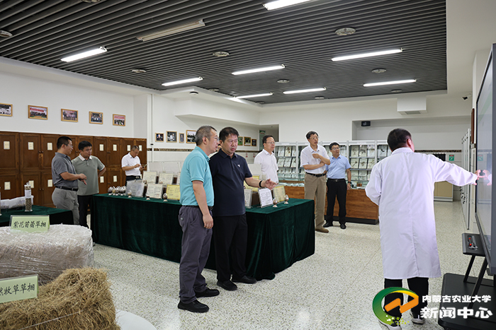 活动中,张军民一行参观了中国—蒙古生物高分子应用“一带一路”联合实验室、校史展览馆、马属动物研究中心、国家级植物学实验教学示范中心等地。