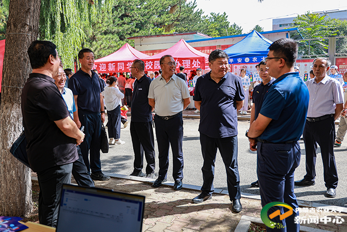 迎新期间,校党委书记陈永胜,党委副书记、校长刘永斌等全体校领导先后深入各个校区“一站式”迎新接待服务点、学生公寓、食堂以及绿色通道办理处,亲切看望前来报到的2025级新生及家长,慰问奋战在迎新一线的工作人员和志愿者。校领导与新生及家长亲切交流,细致询问他们的入学感受与实际需求,耐心解答关于学习生活的疑问。同时向坚守岗位的工作人员与志愿者致以感谢,强调要以“热情、周到、细致”的服务让新生安心、家长放心。