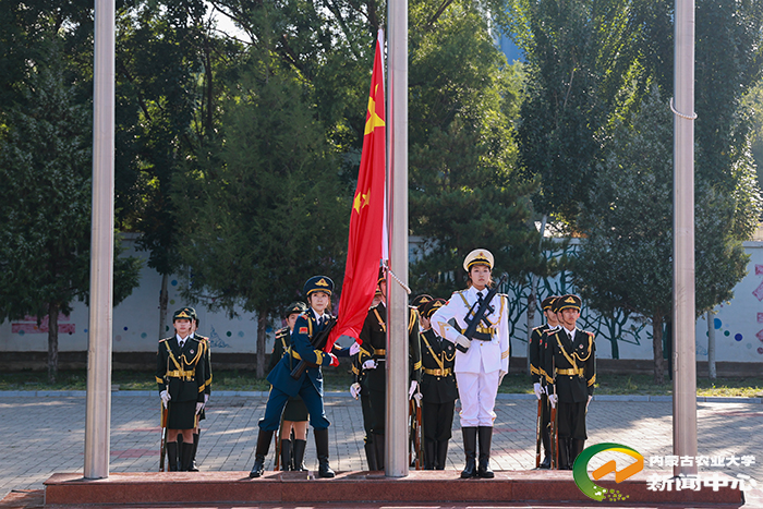 大会在庄严的国歌声中启幕,全体师生肃立行注目礼。陈永胜为军训团授旗,标志着新生军训正式启动。