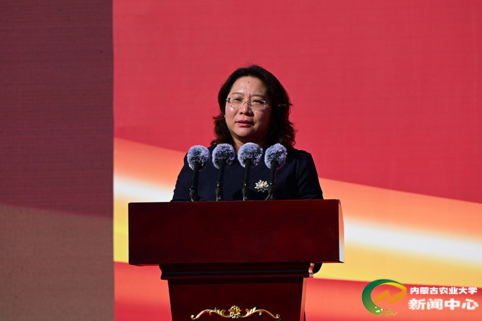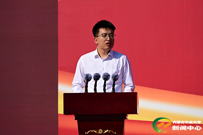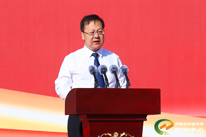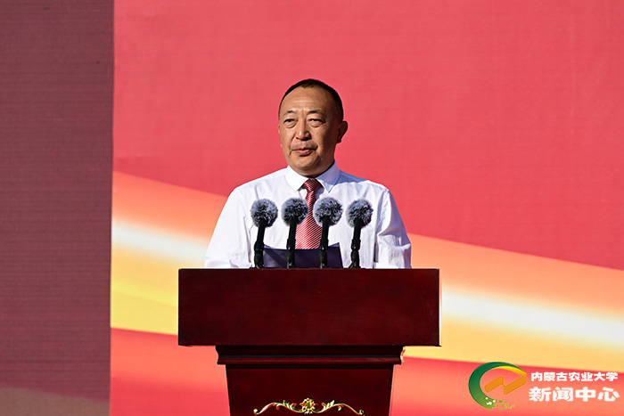 刘永斌代表全校师生,向2025级新同学致辞。他说,学校成立于1952年,开创了内蒙古本科高等教育的先河。学校作为国家西部大开发“一省一校”重点支持建设大学、“省部共建”高校,办学实力强劲,学科优势突出,已培养的26万余名优秀学子,始终秉承着内农人“教民稼穑、振兴农牧”的质朴情怀,在祖国的广阔天地和社会的各行各业笃行不怠、勤奋耕耘,都取得了扎实业绩。
