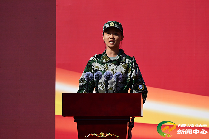 新生代表、机电工程学院2025级农业电气化专业屈书慧同学发言,她号召大家以“团结、求实、博学、创新”为指引,做扎根大地的学习者、勇于突破的创新者、胸怀家国的奉献者,让科研创新惠及北疆土地。