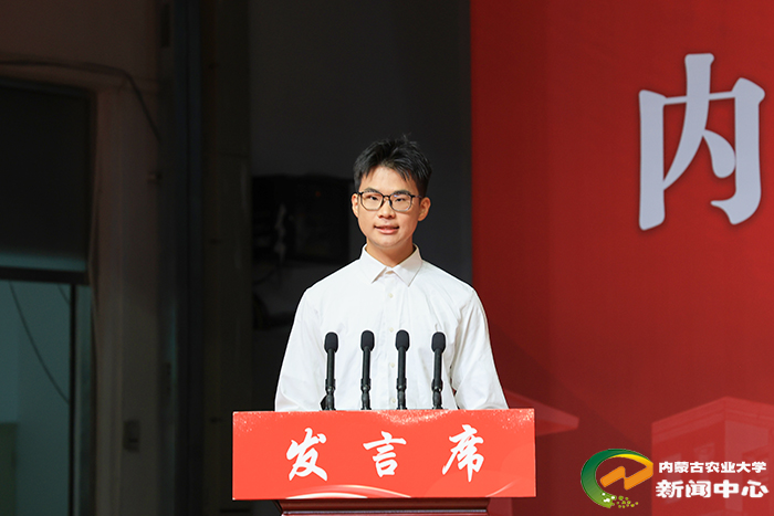 食品科学与工程学院2025级食品加工与安全专业硕士研究生王小天作为新生代表发言。他讲述了自己放弃北京IT行业工作机会、选择考研深造的心路历程,阐释了基于长远价值投资、忠于内心选择、追求更高人生境界的深层考量,并呼吁同学们扎根农业实践,将科研成果转化为服务现代农业发展的实际贡献。