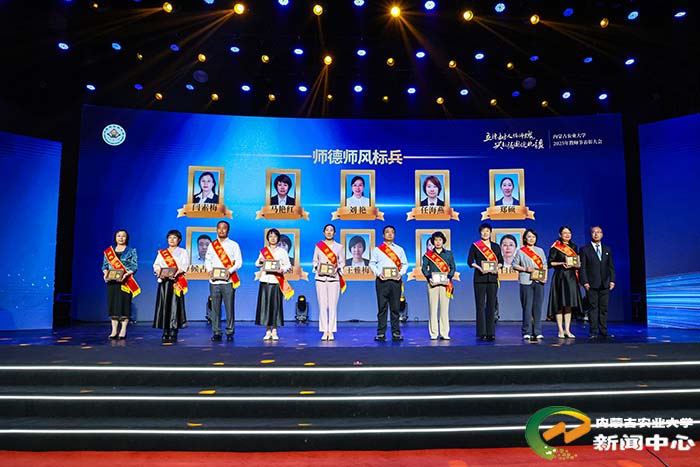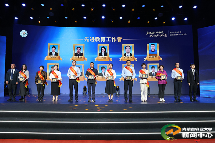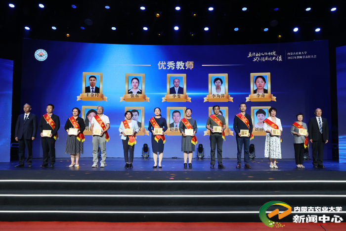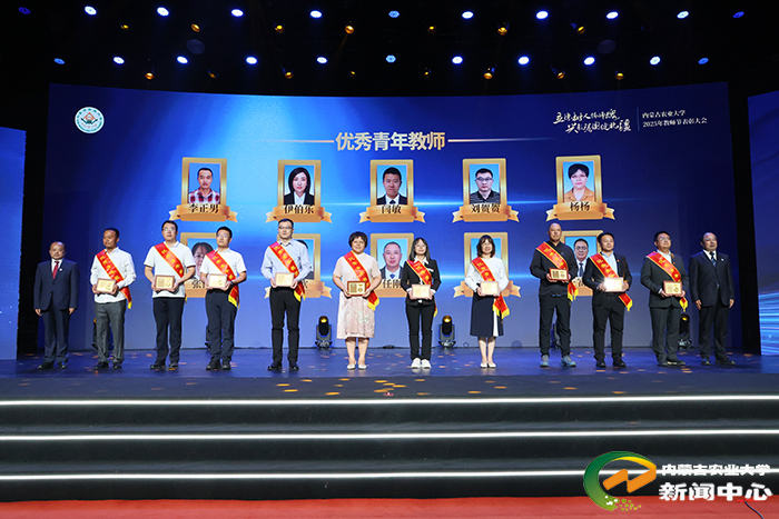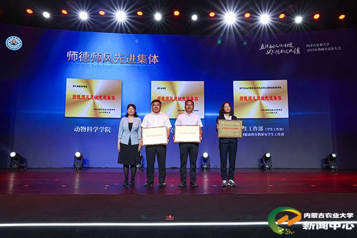 刘永斌宣读了表彰决定,向获奖集体和个人表示热烈祝贺,并鼓励广大教师以先进为榜样,深耕学术、潜心育人,努力培养更多担当民族复兴大任的时代新人。校领导依次为获奖集体和个人颁奖。其中,张和平、韩国栋两位教师获“杰出成就奖”;草原资源及其可持续利用教师团队(入选第四批“全国高校黄大年式教师团队”)获“团队突破奖”;李仙岳(国家自然科学基金青年科学基金A类项目获得者)、袁帅、伊伯乐(第五届全国高校教师教学创新大赛二等奖获得者)获“个人突破奖”。动物科学学院、农学院、学生工作部(学生工作处)心理健康教育教研室荣获“师德建设先进集体”称号。闫素梅等10名教师获“师德师风标兵”,王金玲等10名教师获“优秀教师”,李正男等10名教师获“优秀青年教师”,杨慧君等10名教师获“先进教育工作者”荣誉称号。