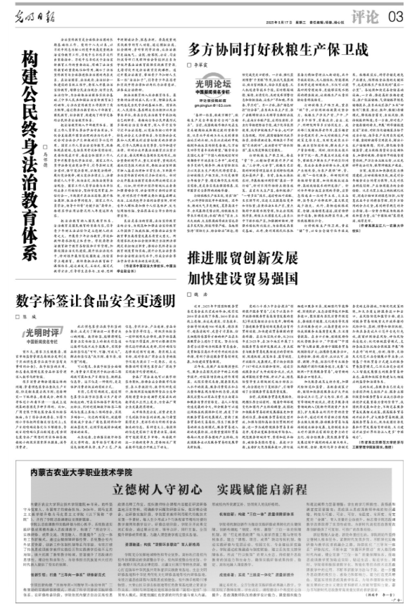 【光明日报】韩瑞平 李一吉:立德树人守初心 实践赋能启新程