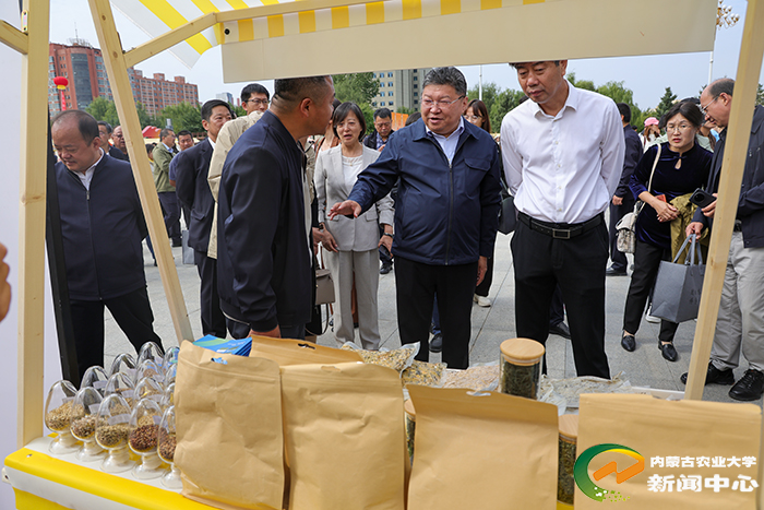 9月21日上午,学校与自治区农牧业科学院在南校区生科大楼前共同举办“耕读北疆践初心,科技兴农庆丰收”2025年中国农民丰收节活动。自治区农牧业科学院党组书记孙国权、专职副书记王永明、副院长崔茂盛,自治区农牧业技术推广中心副主任侯丽丽,校党委书记陈永胜,党委委员、副校长齐景伟、董同力嘎出席活动。