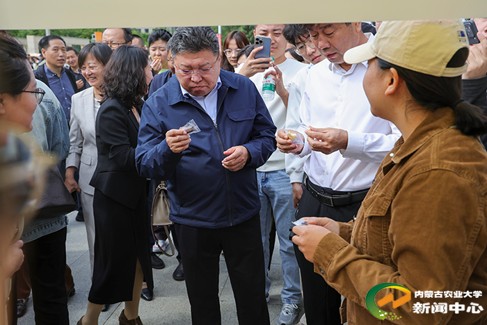 活动现场,陈永胜等与会嘉宾观看了自治区农科院选送的朗诵节目《在方兴未艾的土地上》,农学院学生自编自演的小品《锄头向左、手机向右》以及校艺术团表演的蒙古舞《传承》等节目。与会人员还参观了农学院、园艺与植物保护学院、草业学院、资源与环境学院的科研成果展和创新大赛获奖成果展,观摩了学生创作的种子艺术画、手工制品,并了解了校企合作企业展出的五谷杂粮等特色农产品。