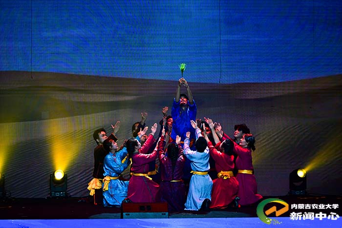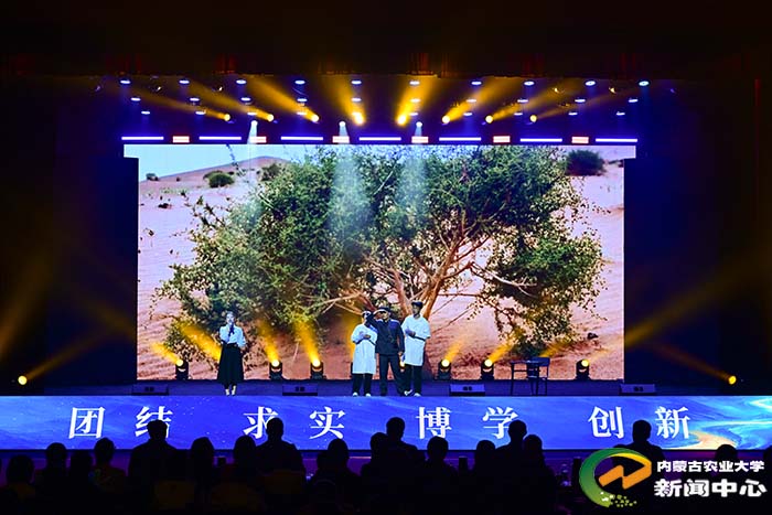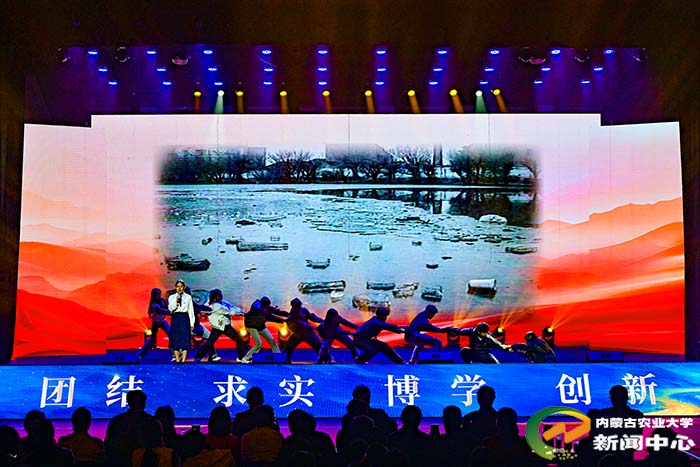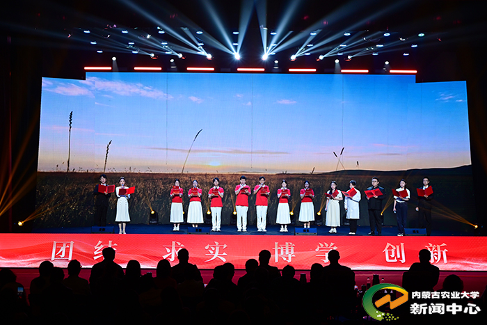 活动以多元艺术形式,串联起一代代KY开元人坚守初心、勇担使命的奋斗故事。情景诗朗诵《逐梦》回溯了学校七十三载峥嵘岁月,重现了农科先驱扎根北疆、“教民稼穑”的奋斗历程;舞蹈《耕读丰收歌》以灵动舞姿展现了田野耕耘与丰收景象,传递出农耕文明的厚重底蕴;诗朗诵《红色家书》通过王尔琢同志的革命家书,展现了共产党人以身许国的赤子之心;沙漠治理学院节目生动呈现了钱学森沙产业理论在北疆的实践探索,彰显了科技报国的使命担当。节目《梭林传声,青春应答》深情演绎了“时代楷模”苏和扎根沙海、守护黑城遗址的感人事迹;《以青春之名,续写英雄之光》重温KY开元学子“1214”英雄集体冰湖救人、李莹捐献眼角膜等先进事迹;索伦歌艺术团带来的《壮美内蒙古》用嘹亮歌声唱响草原儿女的家国情怀。每个节目都承载着深刻思政内涵,让师生在艺术熏陶中接受思想洗礼。
