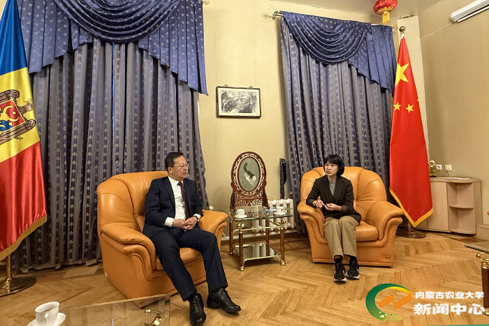 10月20日,刘永斌前往中国驻摩尔多瓦大使馆,拜会王履欣临时代办。刘永斌介绍了此次出访的目的、学校与摩尔多瓦技术大学等机构的合作基础,以及学校近年来在人才培养与引进、学科建设、科学研究、办学特色等方面的成果,特别是在服务国家和自治区战略需求、推动经济社会发展方面的实践成效。王履欣对学校与摩尔多瓦在农业和畜牧业领域开展长远合作表示肯定,希望学校把握访问契机,立足当前国际形势,找准合作切入点,深化与摩尔多瓦技术大学等高校及科研机构的务实合作,从教育交流层面助力两国关系发展。