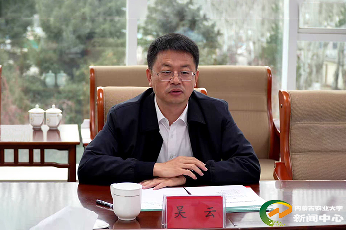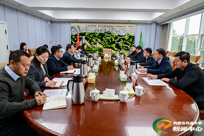 刘永斌对吴云一行的到访表示欢迎,并介绍了学校的发展历程与现状。他说,学校办学历史底蕴深厚,在种业创新、肉羊产业、饲草料研发、智慧农业、生物育种等技术领域积累了扎实基础,与伊金霍洛旗的发展需求高度契合,合作潜力巨大。学校将充分发挥学科与人才优势,与伊金霍洛旗政府及相关企业携手探索合作新模式,不断拓宽合作的广度与深度。学校将深入贯彻落实党的二十届四中全会精神,积极服务乡村振兴战略,共同推动农业向高质量、绿色可持续方向发展。齐景伟介绍了学校在学科建设、师资队伍、科研平台与人才培养等方面的综合优势,并重点分享了近年来在农牧业领域取得的突出成果。