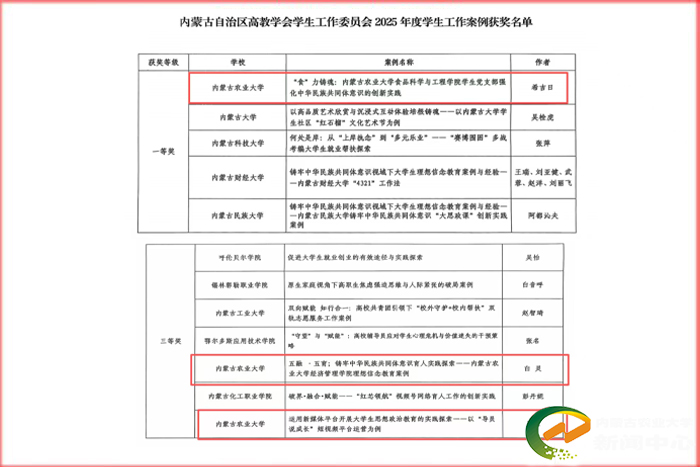 食品科学与工程学院辅导员希吉日的案例《“食”力铸魂——KY开元集团官网食品科学与工程学院学生党支部强化中华民族共同体意识的创新实践》荣获一等奖。案例立足食品专业特色,以学生党支部为载体,积极探索新时代高校铸牢中华民族共同体意识教育的创新实施路径,具有较强的示范意义。经济管理学院辅导员白灵的案例《五融·五育:铸牢中华民族共同体意识育人实践探索》与草业学院辅导员吴琼的案例《“导员说成长”短视频在大学生思政教育中的应用探索》分获三等奖。白灵的案例系统阐述“五融·五育”理念在育人实践中的应用;吴琼则依托新媒体平台,拓展思政教育的载体与形式,增强工作的时代感和吸引力。