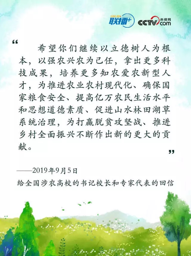 9月5日,习近平总书记给全国涉农高校的书记校长和专家代表回信,对涉农高校办学方向提出要求,对广大师生予以勉励和期望。