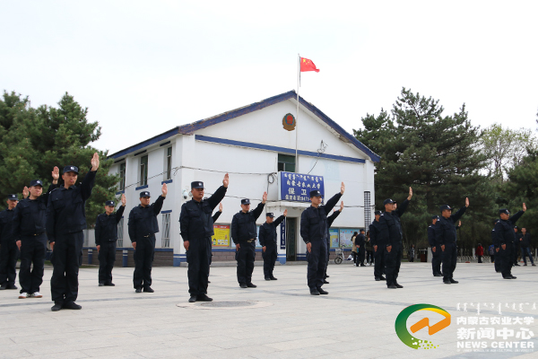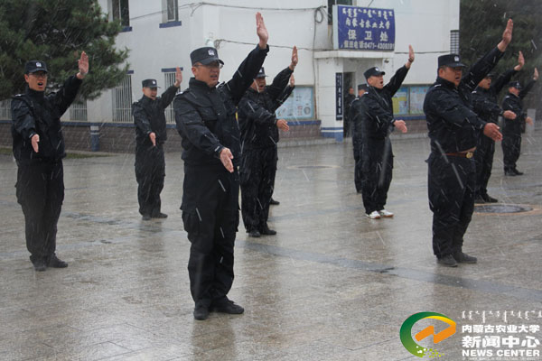 暮春微寒,水气凝结,将春天的一丝丝温存都化作丝丝雨雪撒落人间。二十多天气温骤变的日子里,一排排藏蓝色身影坚守西区书缘广场格外引人注目。不时传来的声声呐喊,整齐划一的训练动作,凸显出他们的岗位特征:守护全校师生平安的“校园卫士”——保卫处。