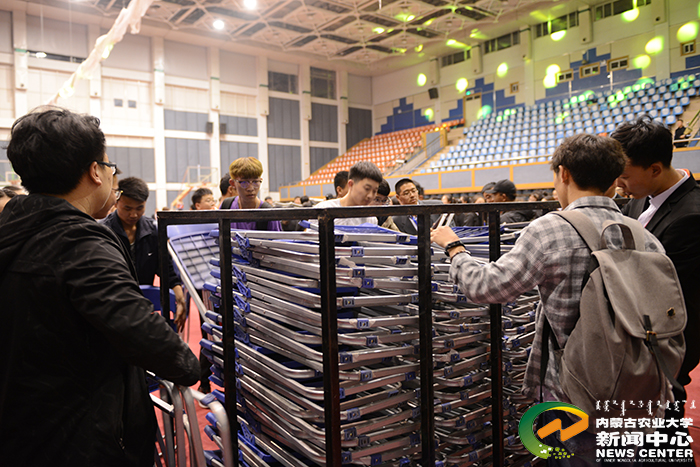 他们步履匆匆、无暇观看表演,穿梭在活动现场。为了这场视听盛典,他们悉心付出、热情服务,每一个精彩的瞬间都凝聚着后勤人员辛勤的汗水,每一个需要的地方都有他们努力工作的身影。为了保证汇演的质量,为了呈现完美的效果,为了“金马杯”的顺利进行,每一个环节他们都认真负责、不断改进。“为学生服务是我的职责,为舞台奉献是我的荣耀。”似口号,又似决心,这些默默无闻的工作人员轻轻的来,悄悄的走,不带走一声赞扬,却又甘之如饴,而现场的掌声、观众的笑容是对他们最大的肯定。