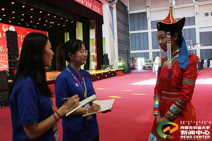 舞台上落落大方的仪态,活动中准确有礼的引导,负责颁奖和礼仪接待的姑娘们,身着红色蒙古袍、头戴蒙古帽,双手交叠,端庄大方,一举一动,一颦一笑,尽显自信风姿。她们时刻关注活动进程,密切配合,衔接好颁奖的每个环节、做好接待的每个引领。虽然,她们不是今天舞台上的主角,没有闪烁不断的镜头,没有优美动人的舞姿,却用她们默默守护的心绽放着更美丽的光彩。