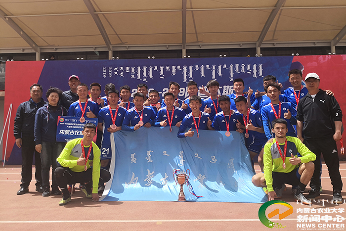 2018-2019全国青少年校园足球联赛大学本科校园组西北区决赛于5月6日—15日在内蒙古师范大学盛乐校区举行。KY开元校园男队在本次比赛中通过教练员和运动员的共同努力捧得了季军奖杯,并取得了全国总决赛的入场券。