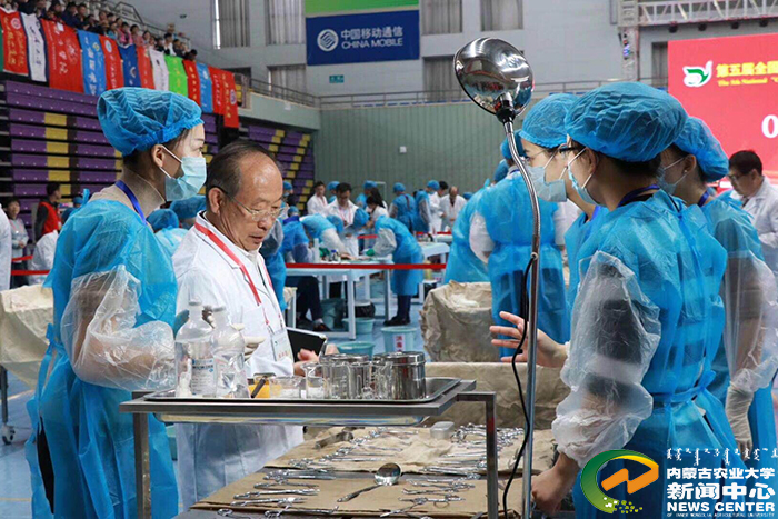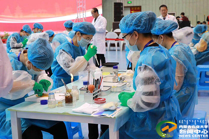 本次比赛包括山羊瘤胃切开术、病原菌检查与血凝试验和禽的病理剖检3个项目。大赛采取现场实操的方式,每个参赛队派出4名选手进行山羊瘤胃切开术、病原菌检查与血凝试验和禽的病理剖检3个项目的操作比赛,每项比赛限时2小时。每队均配备1名裁判,负责考察每队现场操作的规范性、熟练程度和配合情况等,最终结果由裁判委员会综合评定。