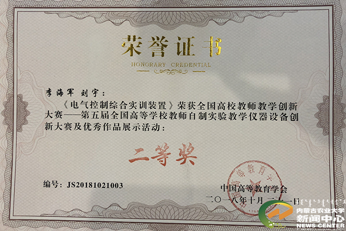 10月21日,中国高等教育博览会(2018年)传来捷报,KY开元机电工程学院李海军、刘宇老师申报立项的集教、学、研于一体的综合性实验开发平台——“电气控制综合实训装置”在“第五届全国高等学校教师自制实验教学仪器设备创新大赛及优秀作品展示活动总决赛”中脱颖而出,获得了大赛二等奖。
