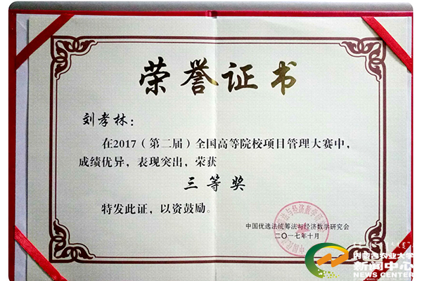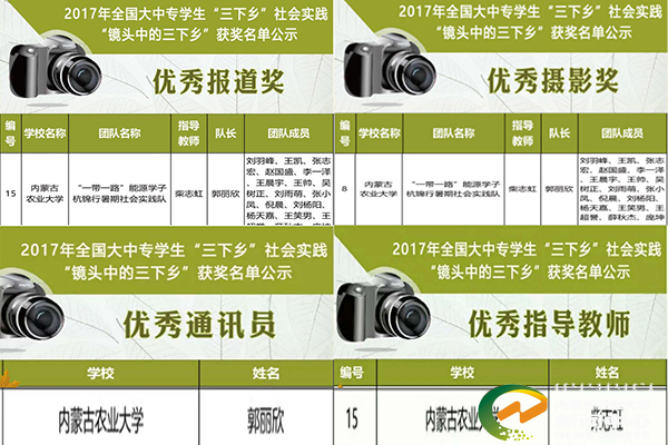 另外,能源与交通工程学院学生2015级道桥专业刘孝林在十月底结束的2017第二届全国高等院校项目管理大赛中,在全国292名选手中脱颖而出获得个人三等奖,学校获得了优秀组织奖,白建光、侯雨丰老师被评为优秀指导教师。能源与交通工程学院组建的“一带一路”能源学子杭锦行暑期社会实践队还在2017年全国大中专学生“三下乡”暑期社会实践“镜头中的三下乡”活动获得了全国优秀宣传报道奖、优秀摄影奖、优秀指导教师(柴志虹老师)、优秀通讯员(郭丽欣同学)。