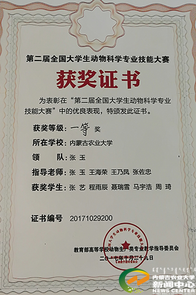 大学生动物科学专业技能、计算机应用大赛等赛事中获奖